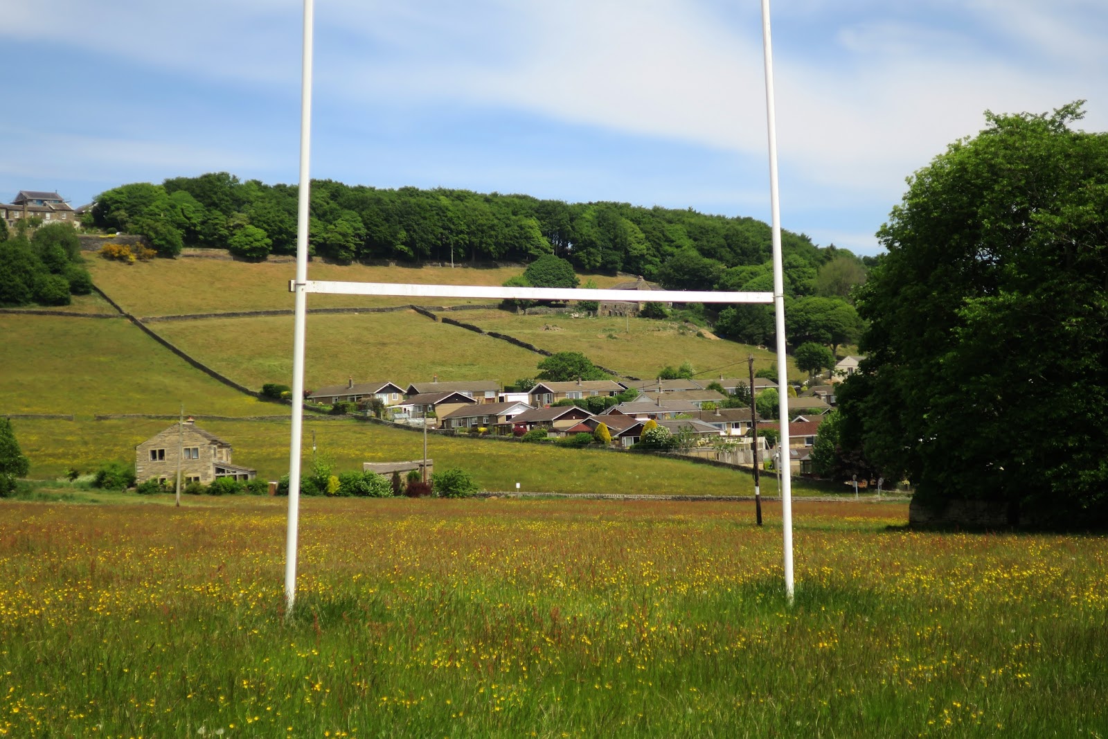 Hello Taken for Granted. It's extraordinary isn't it? It's not the only rugby field in the village so they take their sport seriously. I'm wondering whether it's because the rugby people shift to cricket for the summer and allow the grass to grow on purpose. We have a thing here called 'no mow May' - where people around the country are encouraged to leave areas of grass unmown during May for the sake of insects. Perhaps they are supporting that? Whatever the reason, it's an interesting and lovely sight.